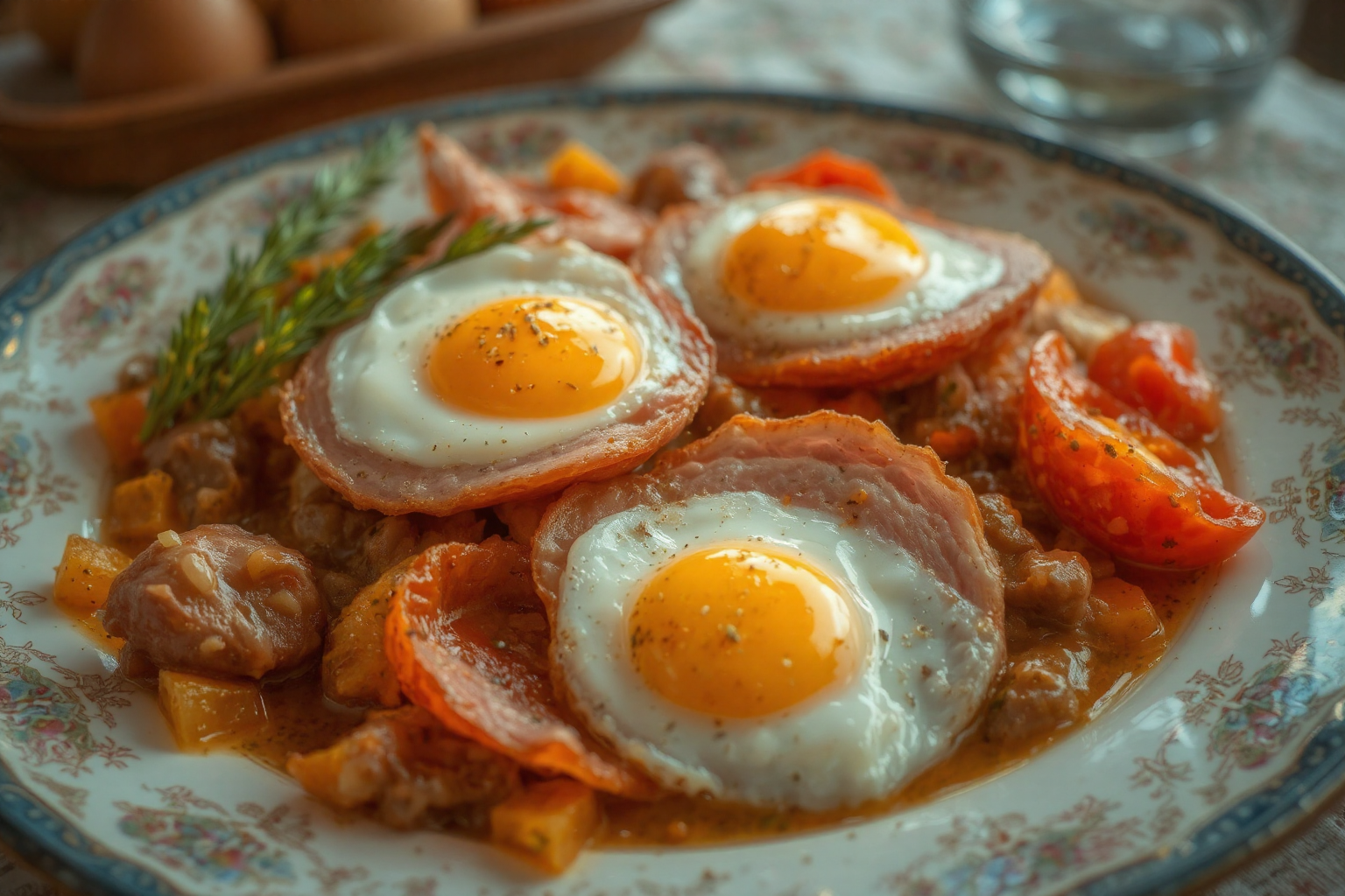 Ham and eggs is a timeless breakfast combination that’s both comforting and nutritious. This dish is a perfect blend of savory ham with the mild, slightly sweet flavor of eggs, often served together in various forms such as scrambled, fried, poached, or baked. It’s a staple in many households due to its simplicity and versatility.