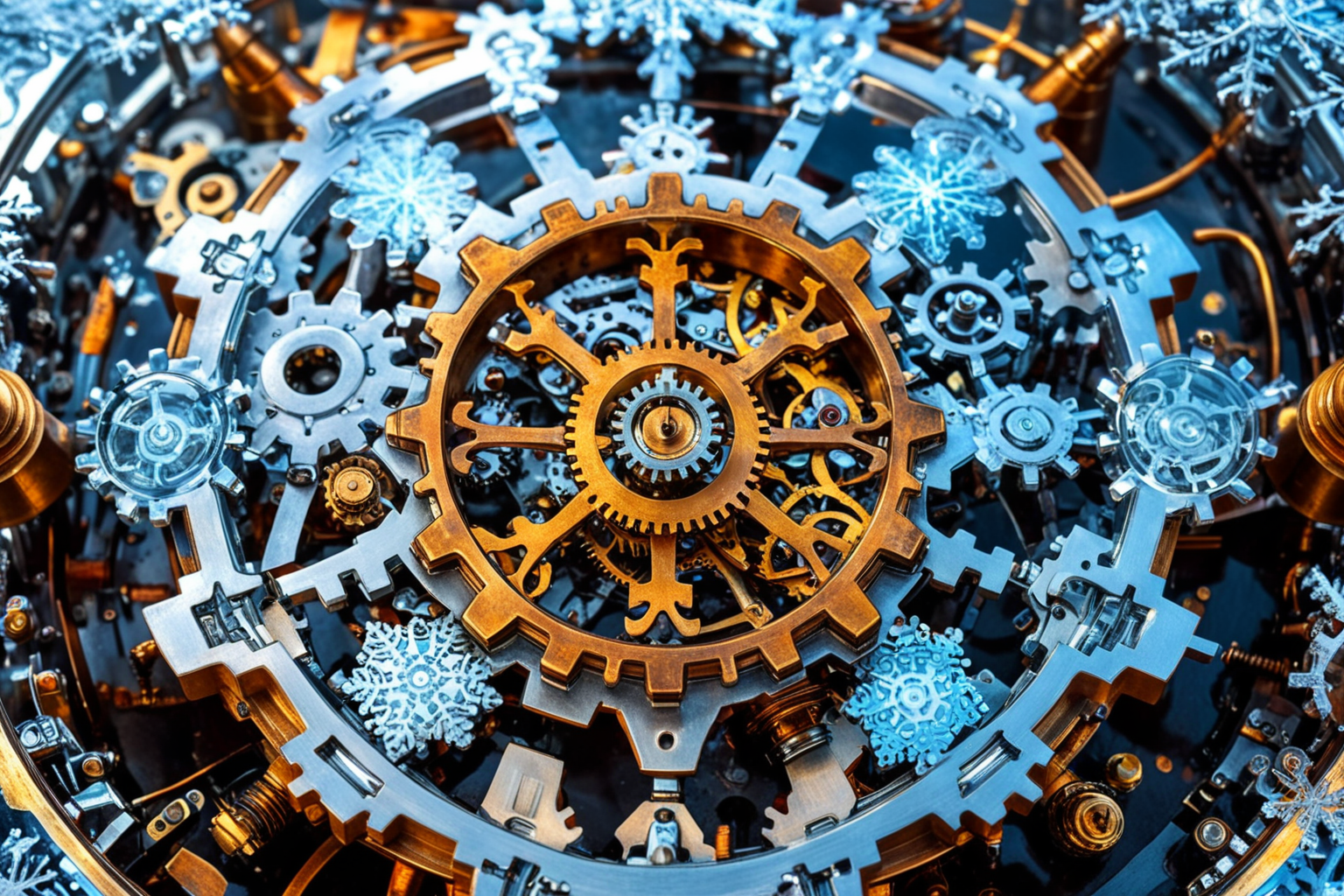 NSFW, Snowflake, centered, close up, Boris Kustodiev style, HD, sharp focus, stunningly beautiful, Steampunk, retrofuturistic science fantasy, steam-powered tech, vintage industry, gears, neo-victorian, steampunk