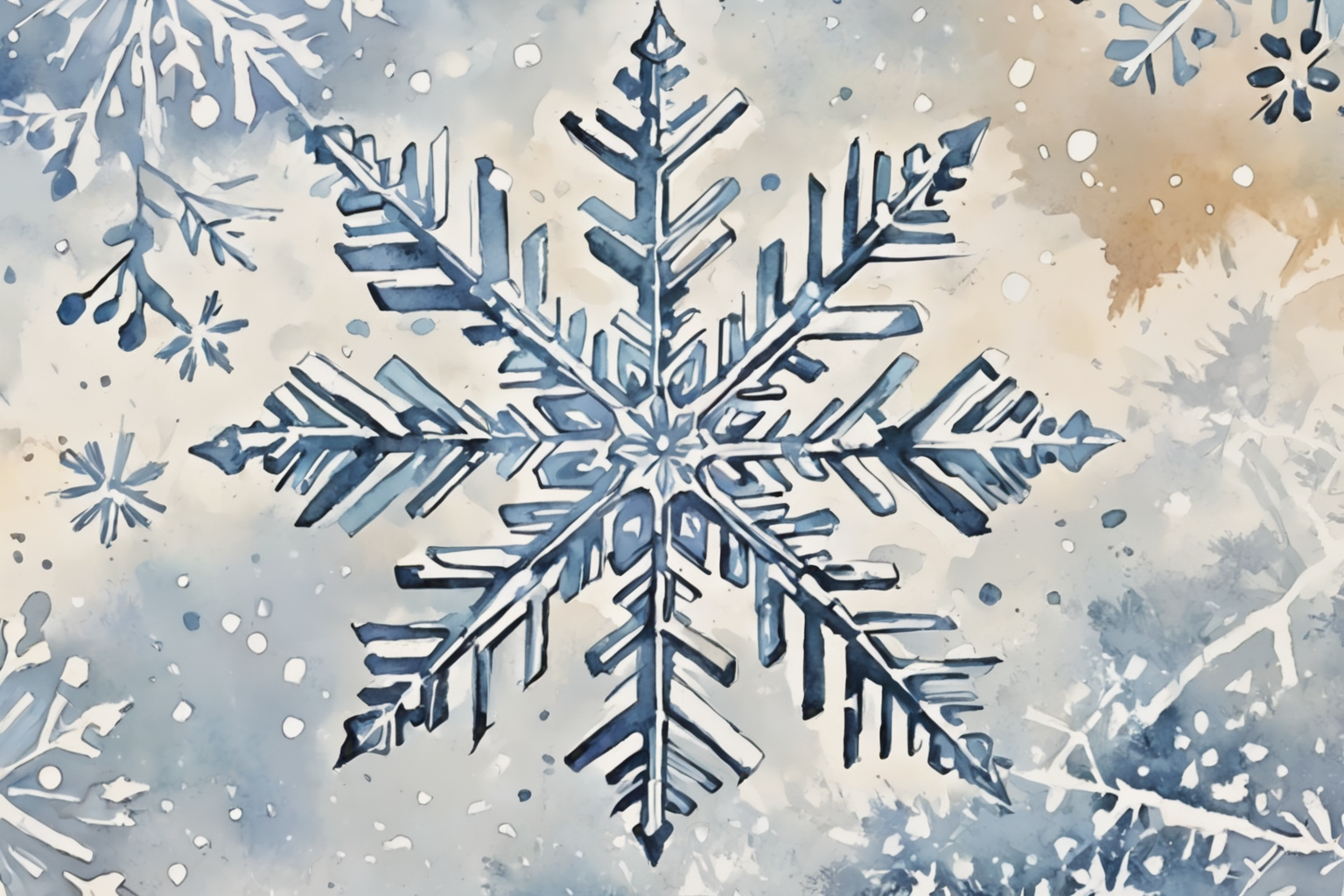 Snowflake, centered, close up, Henryk Siemiradzki style, HD, sharp focus, stunningly beautiful, Watercolor style painting, visible paper texture, colorwash, watercolor