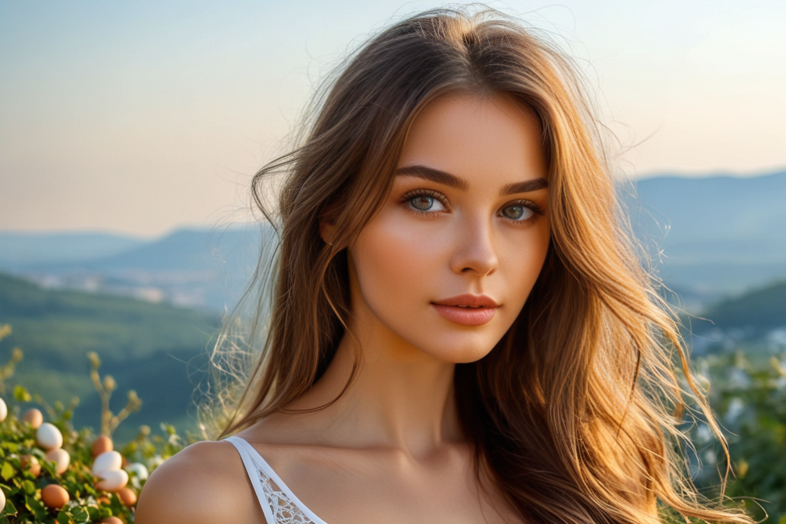 young woman, beautiful face, standing, great body, gorgeous figure, long legs, pretty eyes, long hair, learns Egg (microlanguage) programming language, beautiful background, magnificent scenery, Yuri Pimenov style, HD, sharp focus, stunningly beautiful, Idyllic, peaceful, happy, pleasant, happy, harmonious, picturesque, charming