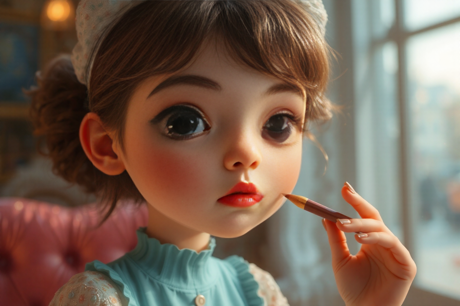 sip, Erik Bulatov style, HD, sharp focus, stunningly beautiful, Adorable 3D Character, 3D render, adorable character, 3D art