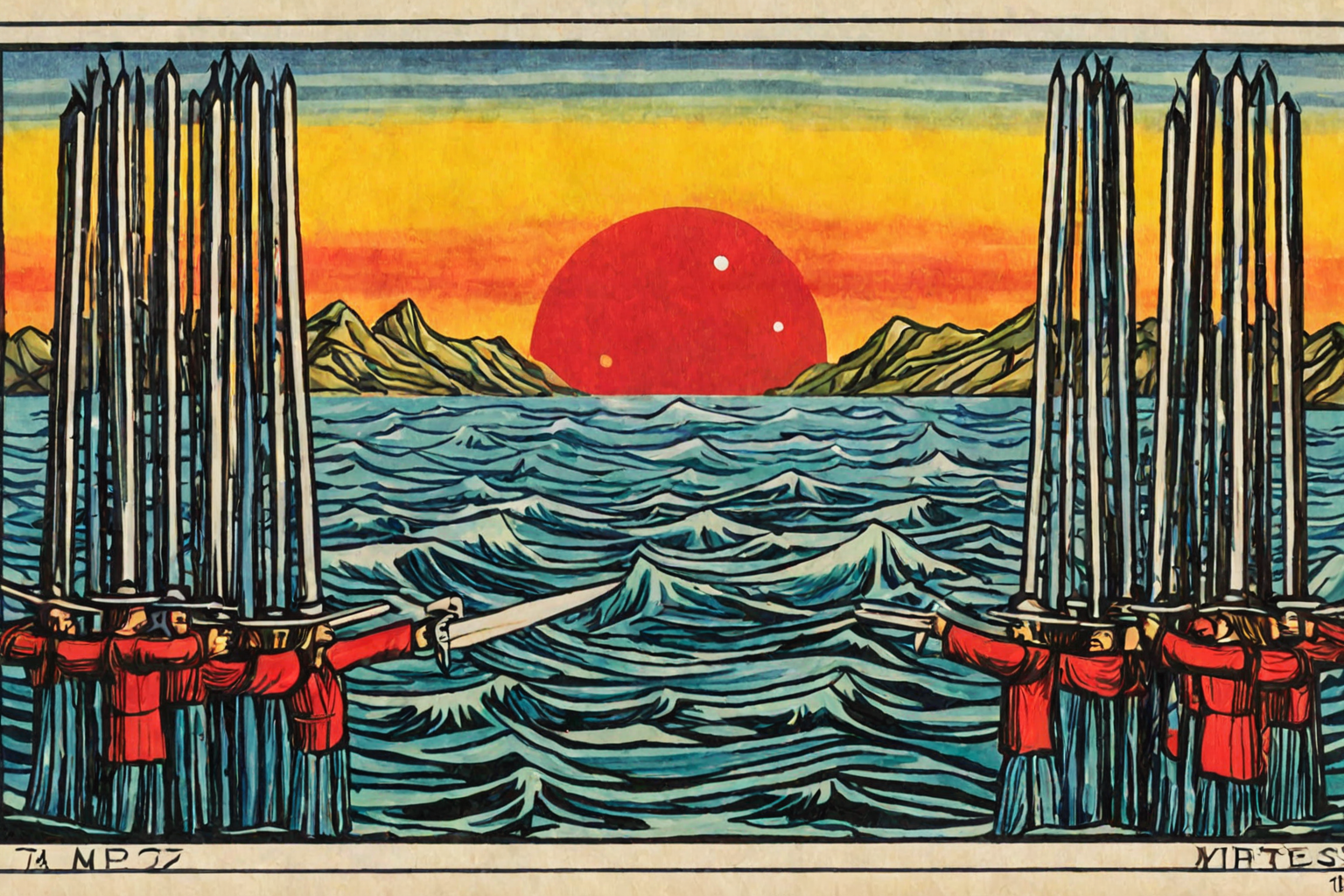 Today we have the Ten of Swords card, which signifies a moment of severe emotional pain or distress. This card often indicates the completion of a painful situation, whether it be the end of a relationship, the conclusion of a difficult phase in life, or significant personal loss. The image depicts a figure pierced by ten swords, which can represent the intensity and finality of these experiences.