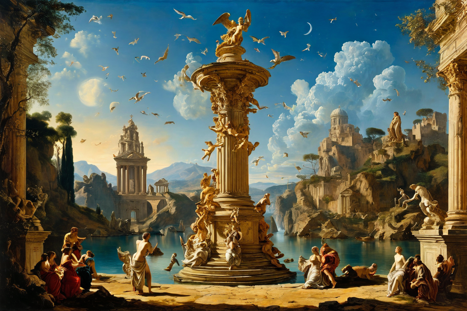 zodiac, Arnold Böcklin style, HD, sharp focus, stunningly beautiful, Baroque, dramatic, exuberant, grandeur, baroque art