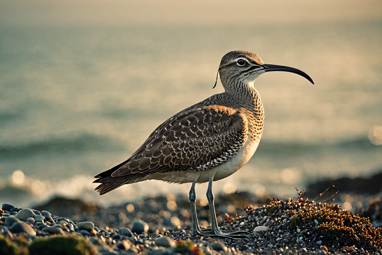 Whimbrel, Kurt Schwitters style, HD, sharp focus, stunningly beautiful, cinematic still, emotional, harmonious, vignette, highly detailed, high budget, bokeh, cinemascope, moody, epic, gorgeous, film grain, grainy