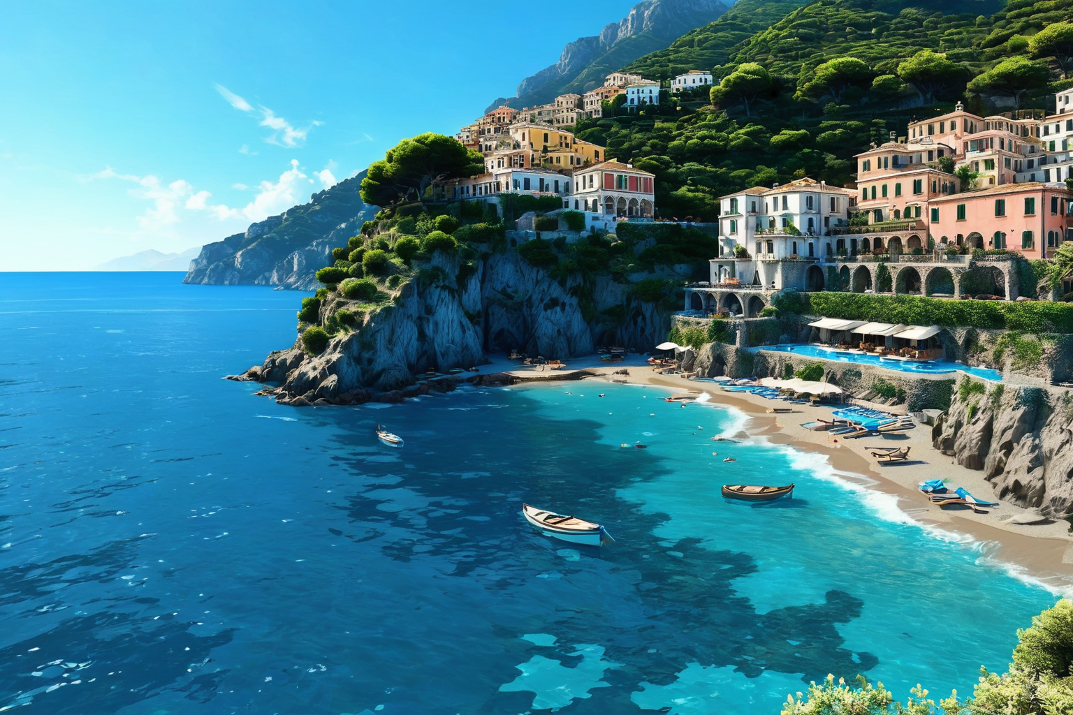 Amalfi Coast Italy, Tintoretto style, Amalfi Coast, Italy, scenery, turquoise waters, picturesque towns, cliffs, stunning villas, natural beauty, rich history, vibrant culture, enchanted, eager to return HD, sharp focus, stunningly beautiful, Adorable 3D Character, 3D render, adorable character, 3D art