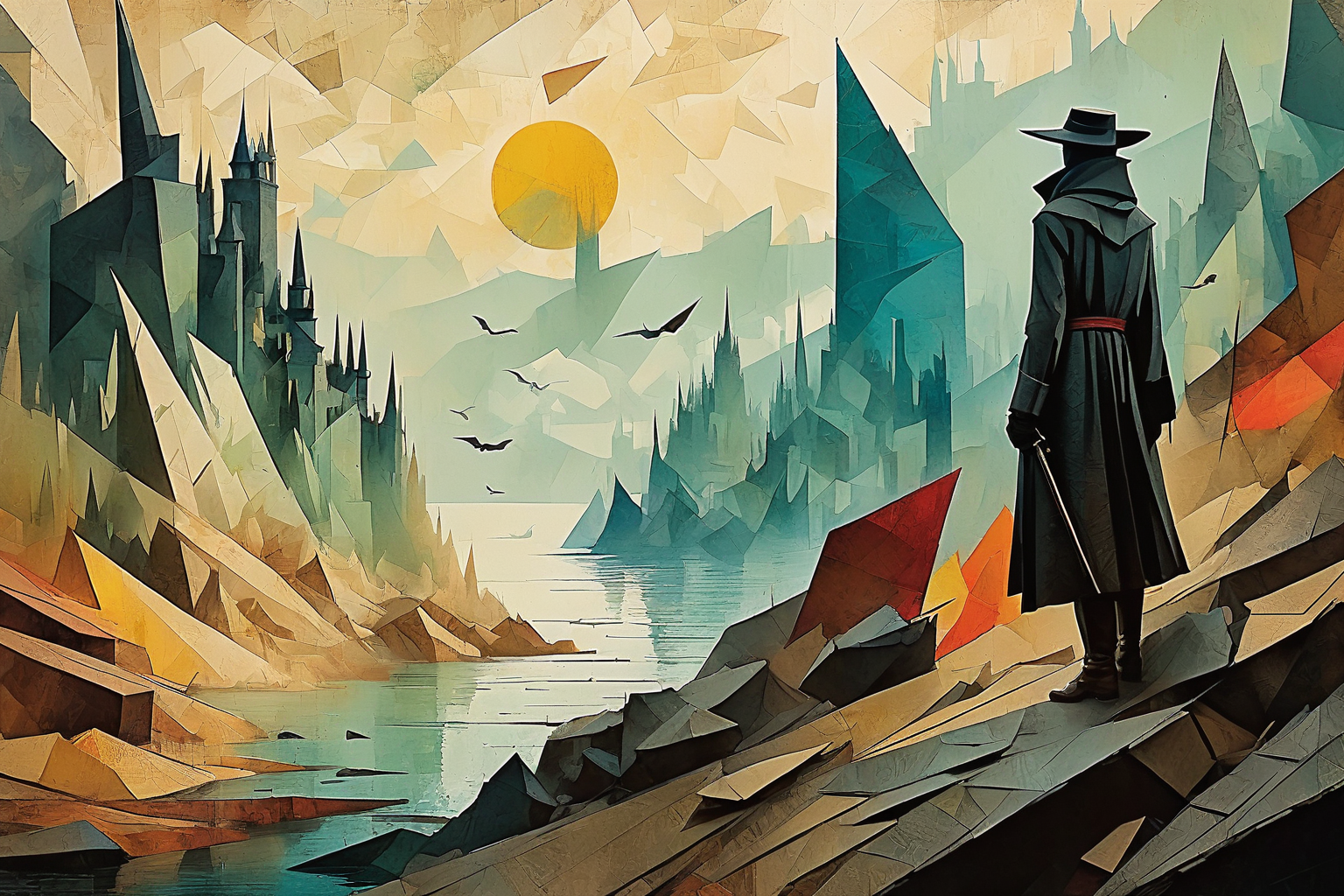 tolerate, Lyonel Feininger style, HD, sharp focus, stunningly beautiful, collage style, mixed media, layered, textural, detailed, artistic