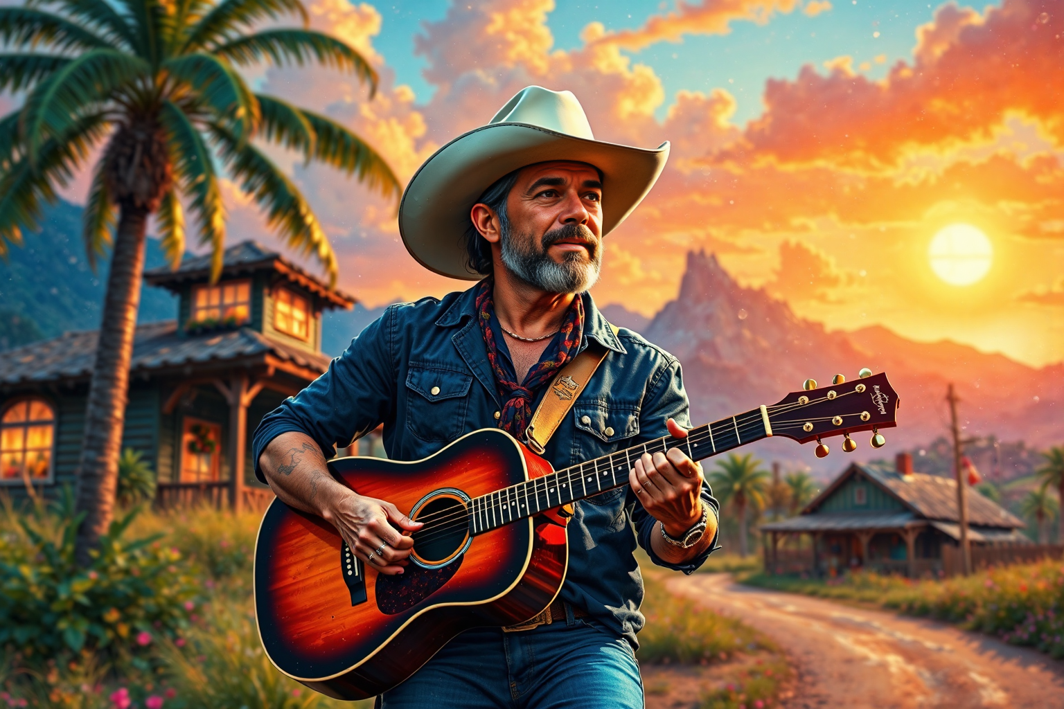 Write This Down song by George Strait, Paul Gauguin style, George Strait, Honkytonkville, Write This Down, single, Billboard, Hot Country Songs, number one, Al Anderson, Tim Bays HD, sharp focus, stunningly beautiful, Glo-fi Art Style, dynamic, dramatic, vibrant colors, glo-fi art style