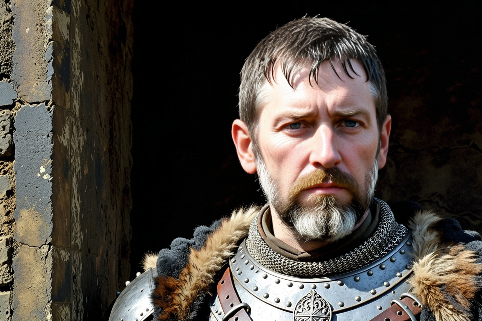 PromptRobert the Bruce, portrait, George Stubbs style, HD, sharp focus, stunningly beautiful, dystopian style, bleak, post-apocalyptic, somber, dramatic, highly detailedNegative promptugly, deformed, noisy, blurry, low contrast, cheerful, optimistic, vibrant, colorful, extra eyes, bad eyes, ugly eyes, imperfect eyes, deformed pupils, deformed iris, cross-eyed, poorly drawn face, bad face, fused face, ugly face, worst face, unrealistic skin texture, out of frame, poorly drawn hands, cloned face, double face, blurry, bad quality