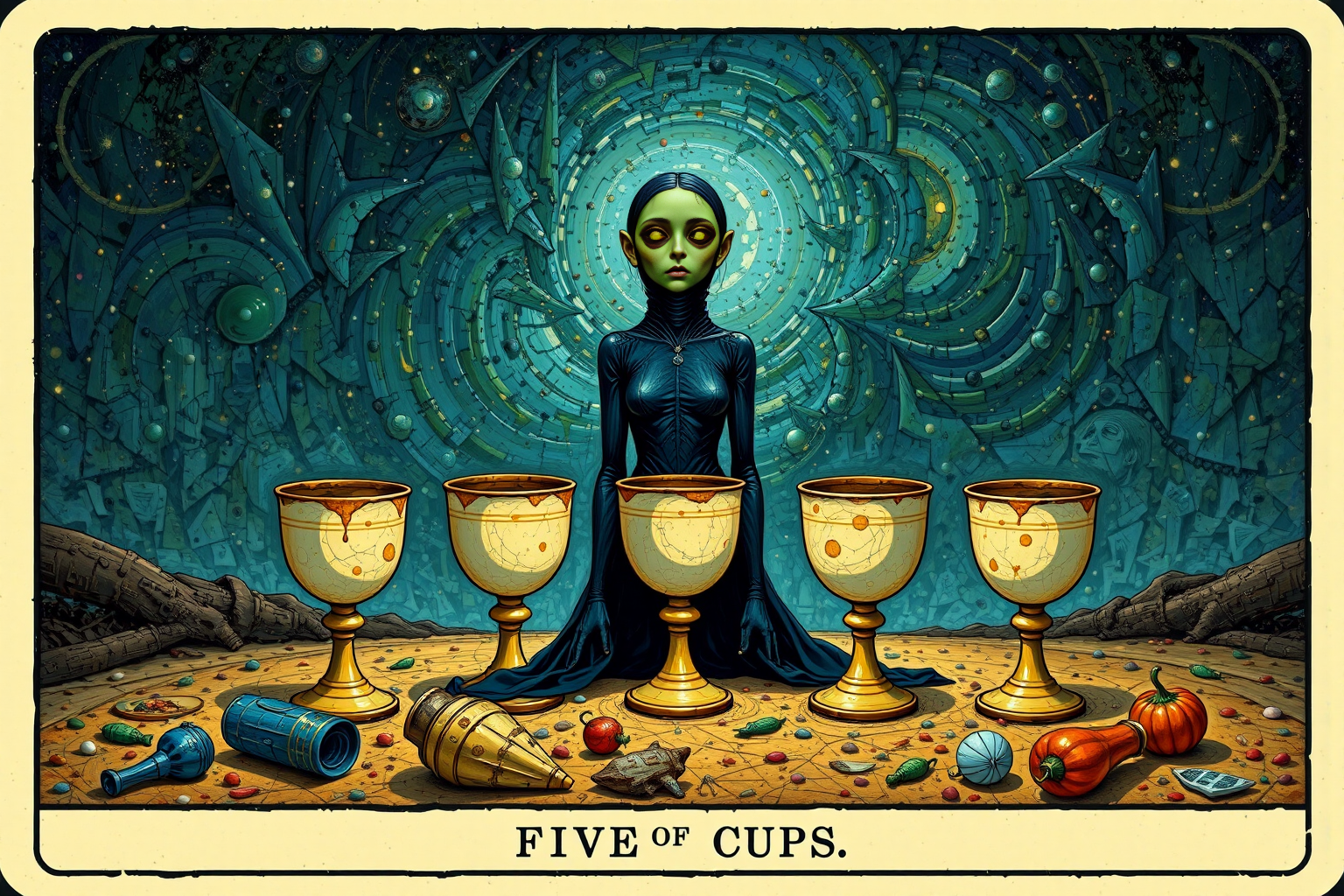 The Five of Cups in tarot often symbolizes disappointment, regret, and loss. It’s a card of melancholy, showing someone who is dwelling on the past, focusing on what has been lost or missed out, rather than appreciating what they still have. This card doesn’t predict negative events so much as it reflects a state of mind.