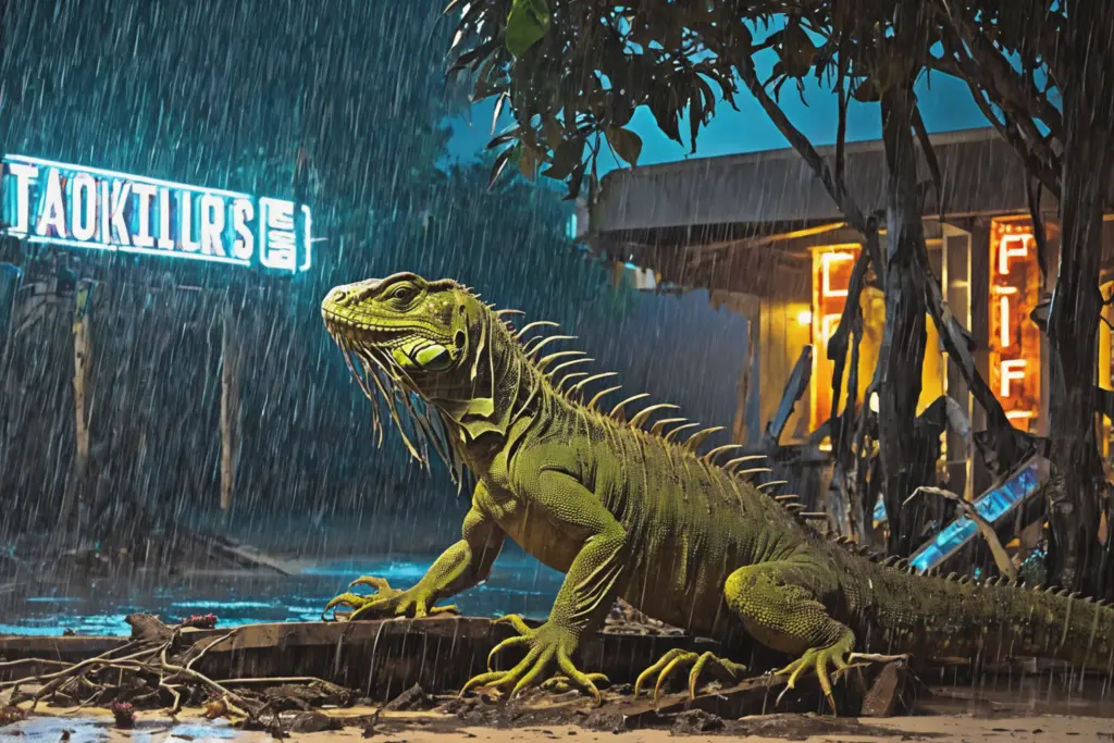 Lizard in rainy night