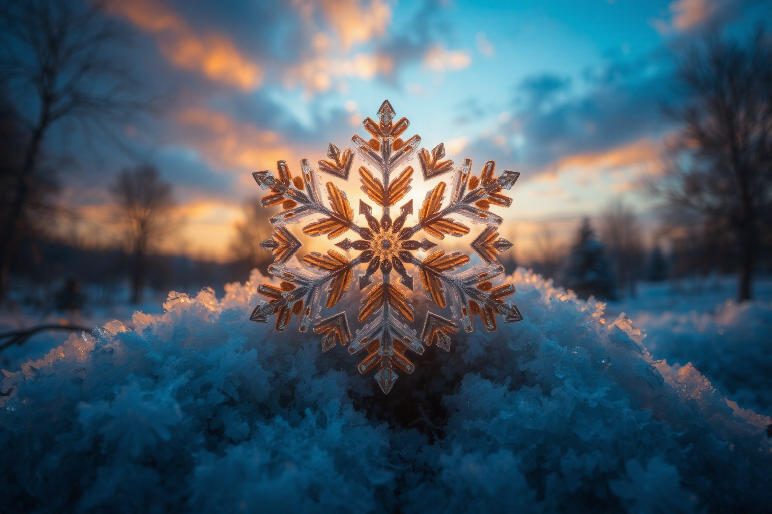Snowflake, centered, close up, Victor Borisov-Musatov style, HD, sharp focus, stunningly beautiful, long shot scenic professional photograph of perfect viewpoint, highly detailed, wide-angle lens, hyper realistic, with dramatic sky, polarizing filter, natural lighting, vivid colors, everything in sharp focus, HDR, UHD, 64K