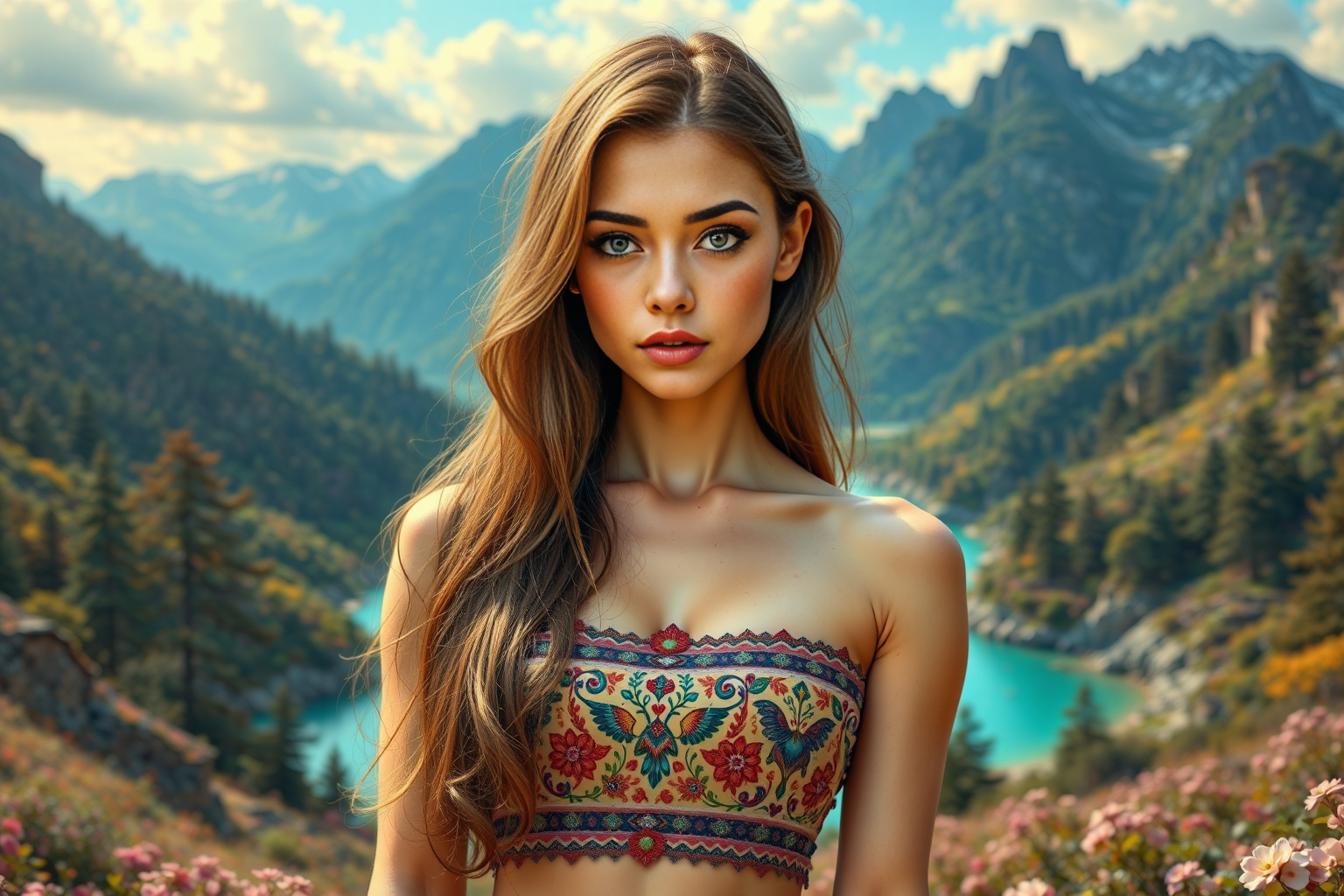 NSFW, young woman, beautiful face, standing, great body, gorgeous figure, long legs, pretty eyes, long hair, learns Powerhouse programming language, beautiful background, magnificent scenery, David Burliuk style, HD, sharp focus, stunningly beautiful, Dadaism Art, satirical, nonsensical, dadaism art
