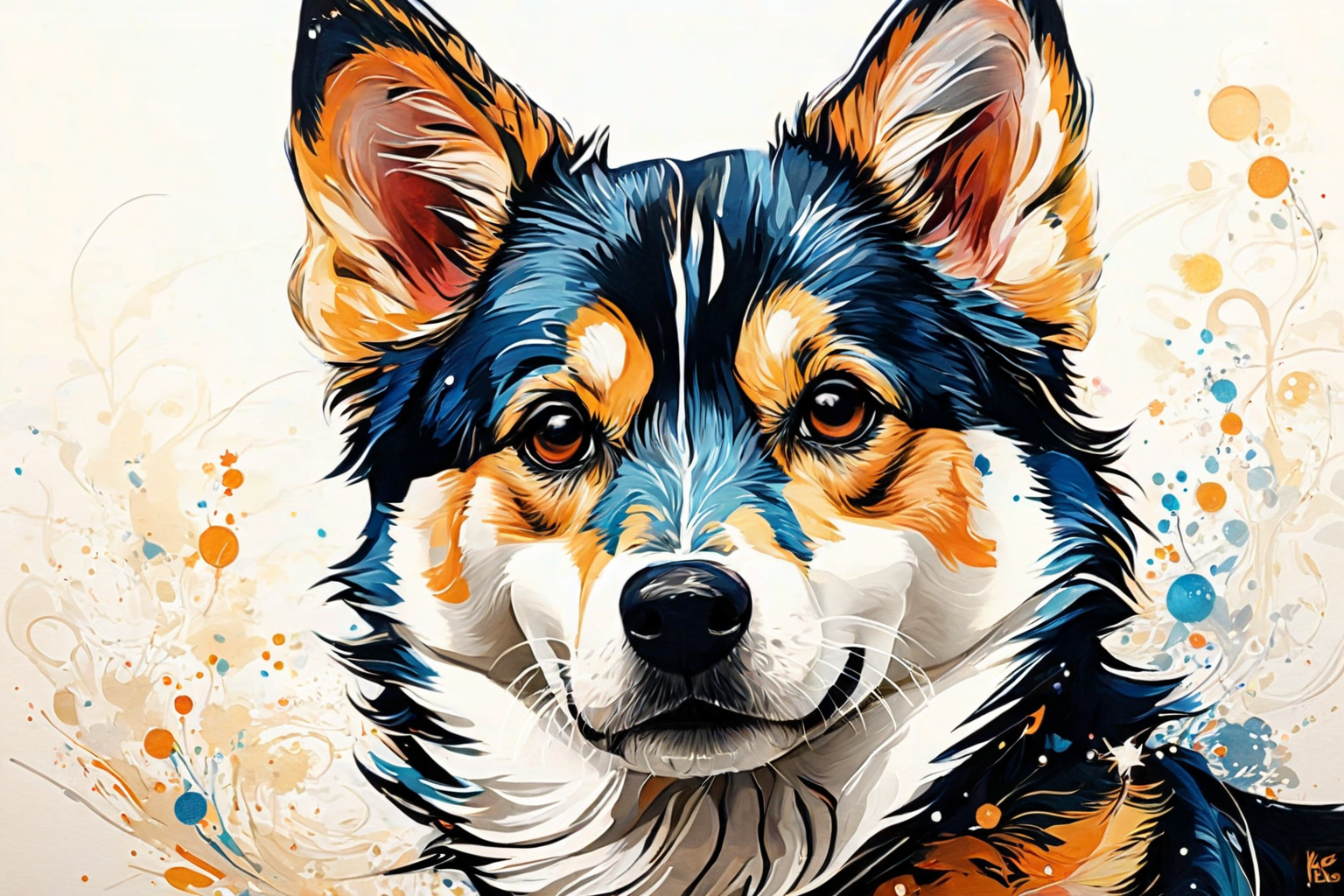 Alaskan Klee Kai, Pavel Fedotov style, HD, sharp focus, stunningly beautiful, Doodle Art Style, drawing, freeform, swirling patterns, doodle art style