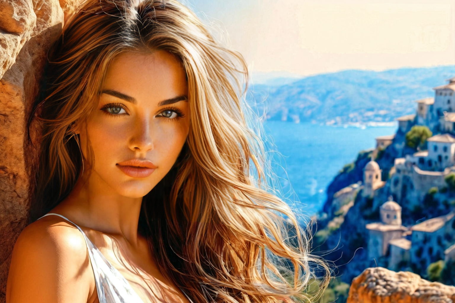 young woman, beautiful face, great body, gorgeous figure, long legs, pretty eyes, long hair, great bust, beautiful background, magnificent scenery, Andreas Mantegna style, HD, sharp focus, stunningly beautiful, Blueprint Schematic Drawing, technical drawing, blueprint, schematic