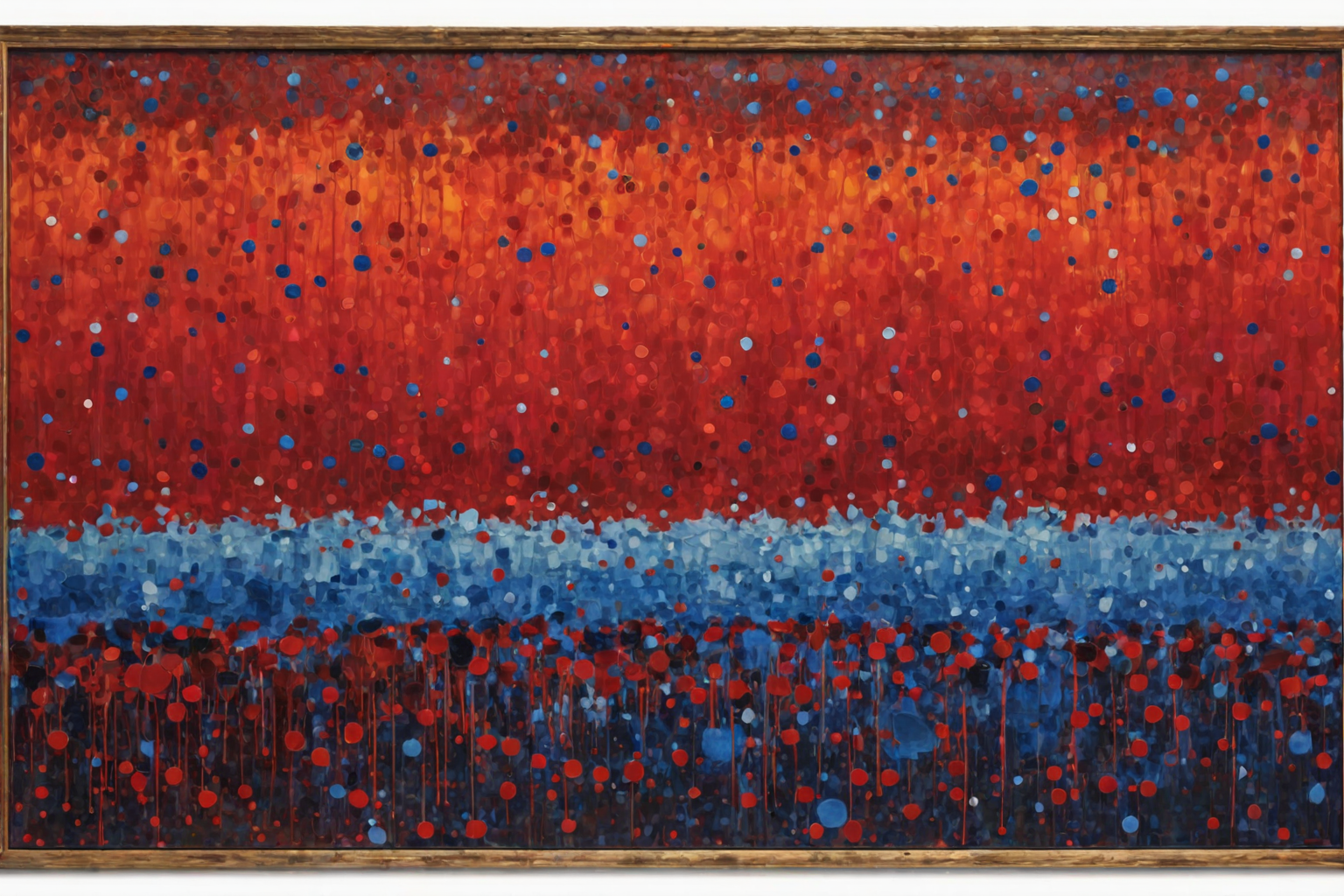 NSFW, Royal Red and Blue by Mark Rothko , Royal Red and Blue, Mark Rothko painting, color field painting, deep red, lighter blue, sense of depth, emotional resonance, psychological experience, spiritual experience. HD, sharp focus, stunningly beautiful, pointillism style, composed entirely of small, distinct dots of color, vibrant, highly detailed
