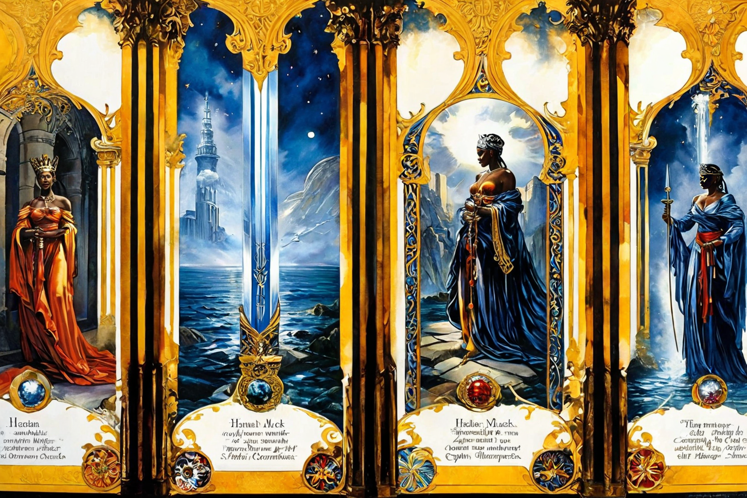 Nine of Swords Tarot card, Heinz Mack style, Today, Nine of Swords card; overwhelming worry, anxiety, difficult decision, situation, negative feelings, self-reflection, guidance, external sources, fears exaggerated, hopeful, focused on positive outcomes, negativity, solution, opportunities, growth, trust in yourself, faith. HD, sharp focus, stunningly beautiful, Harlem Renaissance Art Style, dynamic, dramatic, 1920s African American culture, Harlem Renaissance art style