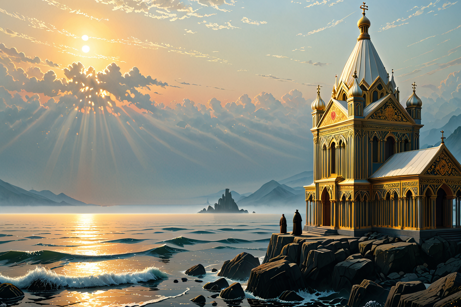 Frogfish, Caspar David Friedrich style, HD, sharp focus, stunningly beautiful, Neo-Byzantine, grand decorative religious style, Orthodox Christian inspired, Neo-Byzantine