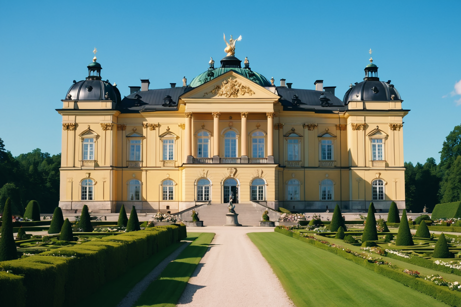 Drottningholm Palace Sweden, Olga Rozanova style, Baroque architecture, stunning palace, rich history, Drottningholm Palace, beautifully manicured gardens, grandeur, opulence, unforgettable experience. HD, sharp focus, stunningly beautiful, cinematic photo, 35mm photograph, film, bokeh, professional, 4k, highly detailed