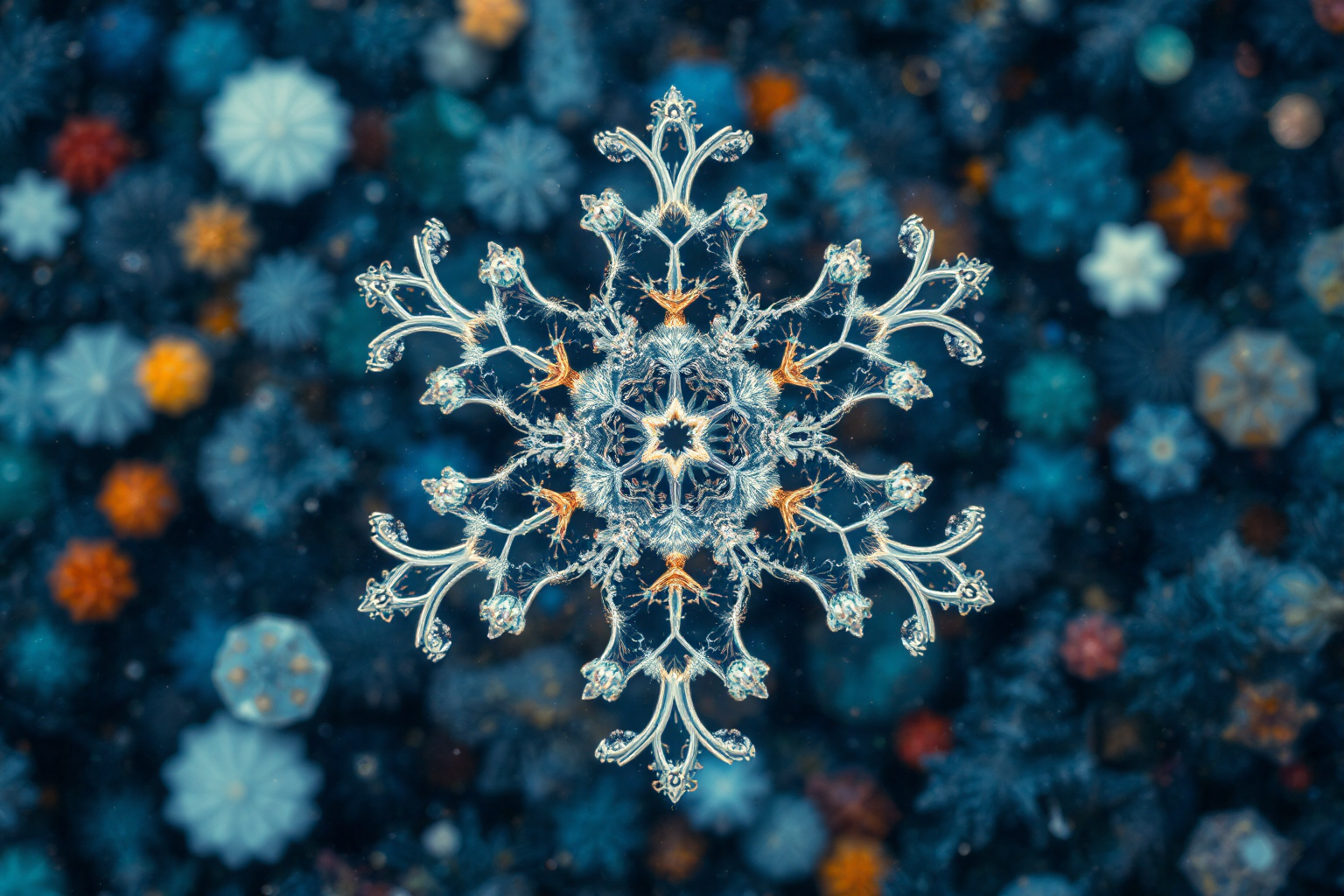 Snowflake, centered, close up, Francisco Goya style, HD, sharp focus, stunningly beautiful, Color Field Painting, abstract, simple, geometic, color field painting style