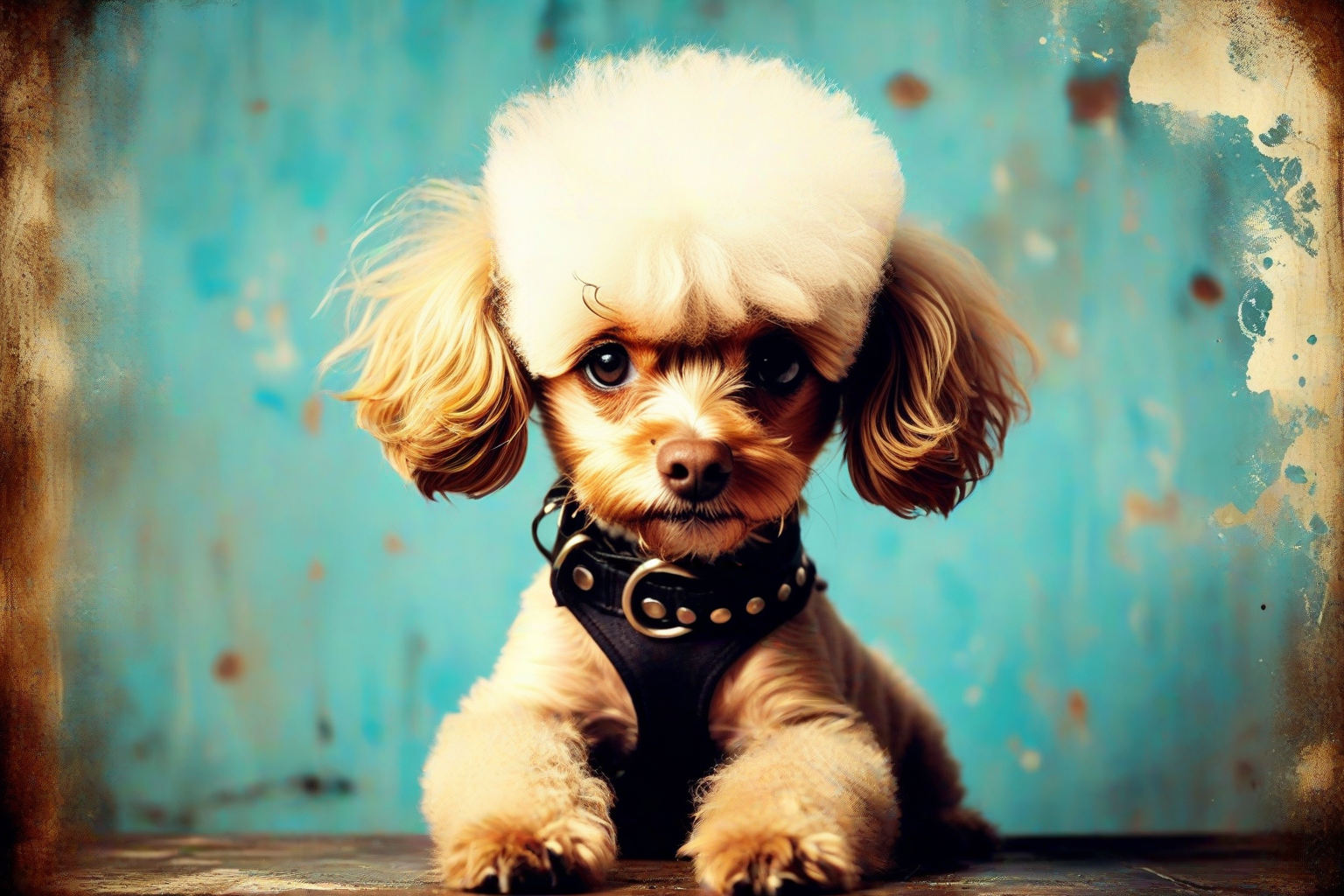 NSFW, Teacup Poodle, John Heartfield style, HD, sharp focus, stunningly beautiful, grunge style, textured, distressed, vintage, edgy, punk rock vibe, dirty, noisy
