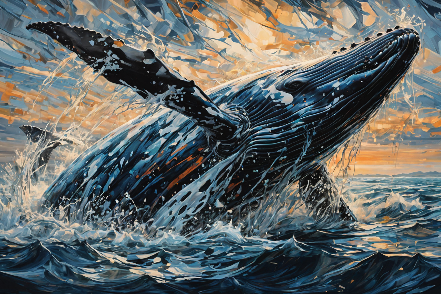 Humpback Whale, Alexander Melamid style, HD, sharp focus, stunningly beautiful, Expressionism Art Style, movement, contrast, emotional, exaggerated forms, expressionism art style
