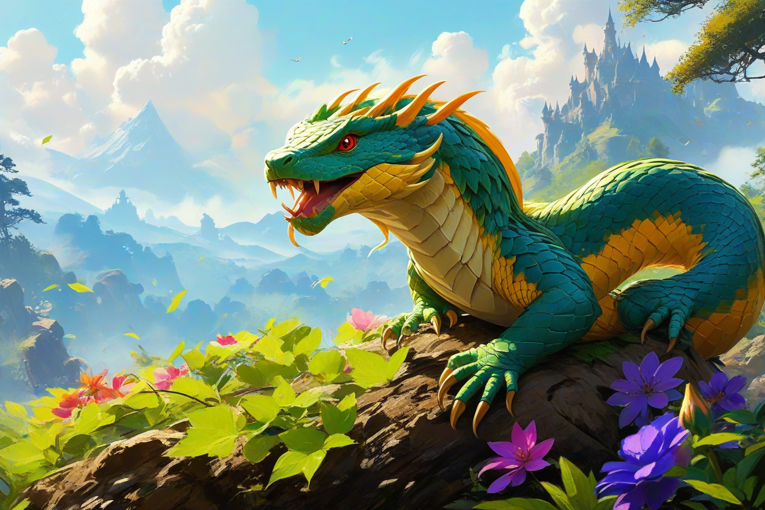 Bush Viper, Konstantin Korovin style, HD, sharp focus, stunningly beautiful, Legend of Zelda style, vibrant, fantasy, detailed, epic, heroic, reminiscent of The Legend of Zelda series