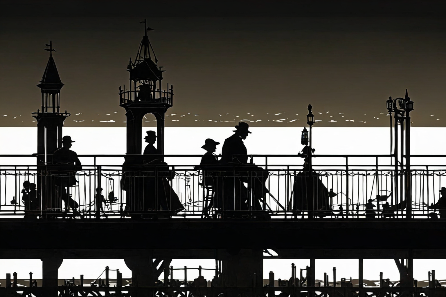 Pier 39 San Francisco, Sir John Everett Millais style, Pier 39, San Francisco, lively atmosphere, beautiful scenery, street performances, memorable day, worth a visit! HD, sharp focus, stunningly beautiful, 3D papercut shadow box of, layered, dimensional, depth, silhouette, shadow, papercut, handmade, high contrast