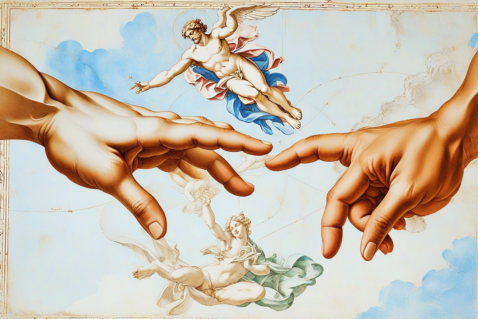WildHorizonXL image generation model “sees” the “Creation of Adam” painting by Michelangelo.