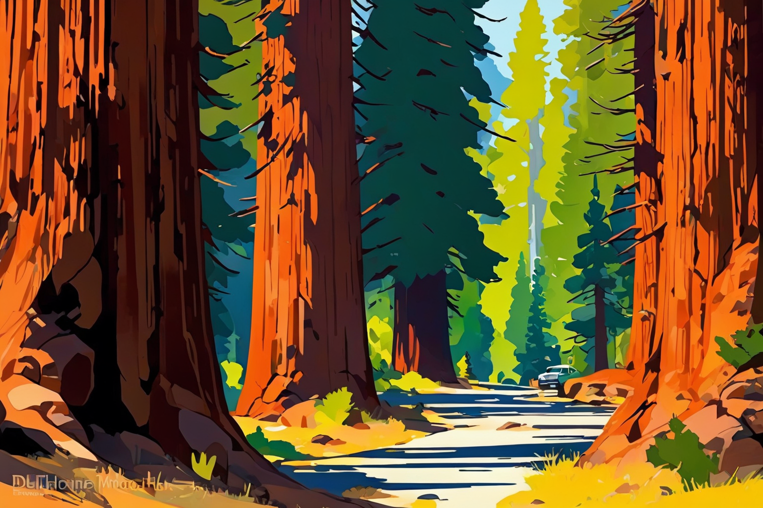 Sequoia National Park USA, Mark Rothko style, Sequoia National Park, USA, enormous ancient sequoias, towering presence, awe, Mother Nature’s wonders, serene beauty, everlasting impression, vast grandeur, magnificent ancient sequoias, natural harmony, incredible landscape, unforgettable memories HD, sharp focus, stunningly beautiful, Automotive advertisement style, Sleek, dynamic, professional, commercial, vehicle-focused, high-resolution, highly detailed