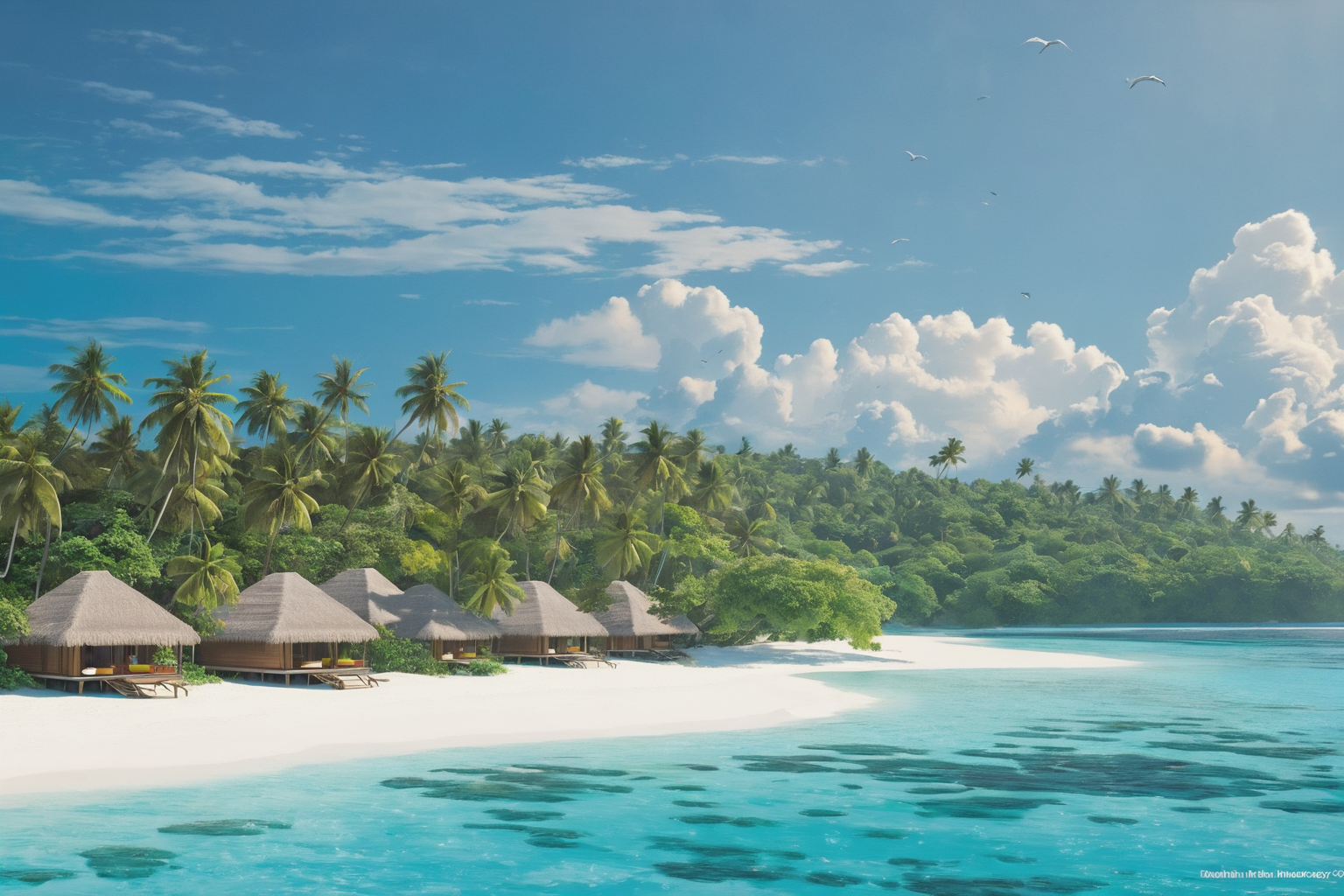 Maldives Indian Ocean, Konstantin Makovsky style, Maldives, Indian Ocean, paradise, crystal-clear turquoise waters, white sandy beaches, lush greenery, serene ambiance, stunning overwater bungalows, tropical getaway HD, sharp focus, stunningly beautiful, Conceptual Art, concept art