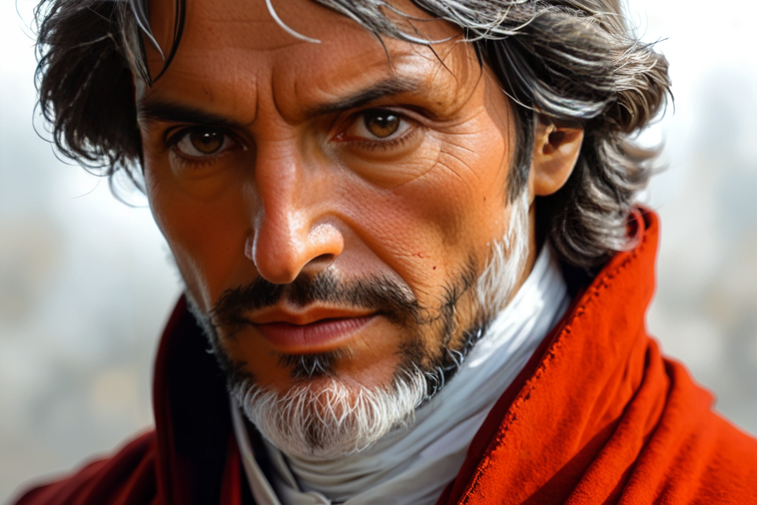 PromptDante Alighieri, portrait, Erik Bulatov style, HD, sharp focus, stunningly beautiful, Flat 2D Art, simple flat color, 2-dimensional, Flat 2D Art Style