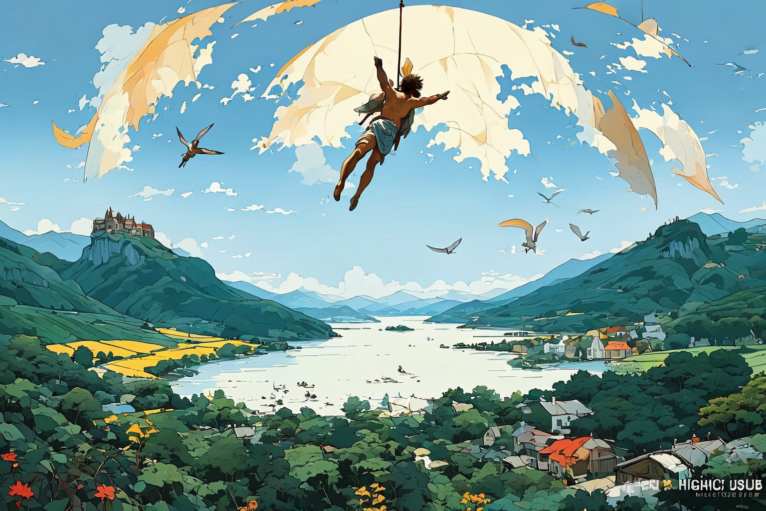 The Fall of Icarus by Pieter Bruegel , Pieter Bruegel, Flemish painting, Icarus, mythical figure, wax wings, fall from sky, unique perspective, farmers, everyday life, ordinary people, series of six, The Series of Months, commission, wealthy patron, display, Kunsthistorisches Museum, Vienna, Austria. HD, sharp focus, stunningly beautiful, Vector art, Vivid colors, Clean lines, Sharp edges, Minimalist, Precise geometry, Simplistic, Smooth curves, Bold outlines, Crisp shapes, Flat colors, Illustration art piece, High contrast shadows, Technical illustration, Graphic design, Vector graphics, High contrast, Precision artwork, Linear compositions, Scalable artwork, Digital art