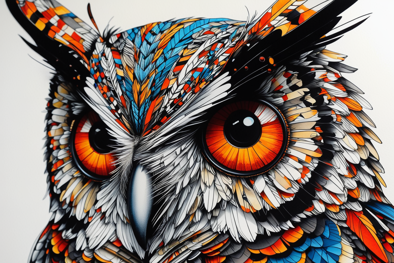 Owlfly, Vladimir Yankilevsky style, HD, sharp focus, stunningly beautiful, Marker Drawing, bold marker lines, visibile paper texture, marker drawing
