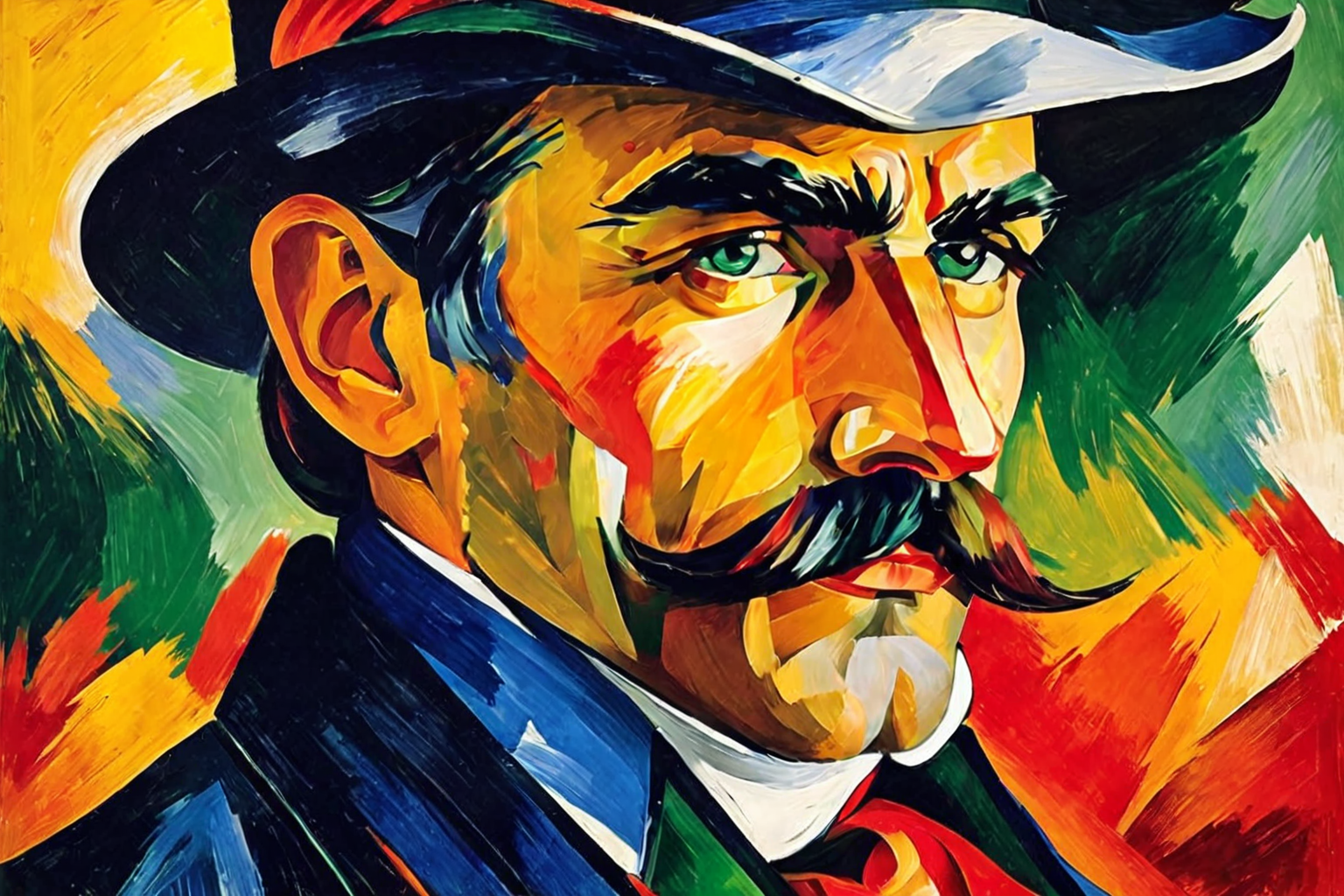 PromptLech Walensa, portrait, Franz Marc style, HD, sharp focus, stunningly beautiful, Flat 2D Art, simple flat color, 2-dimensional, Flat 2D Art Style