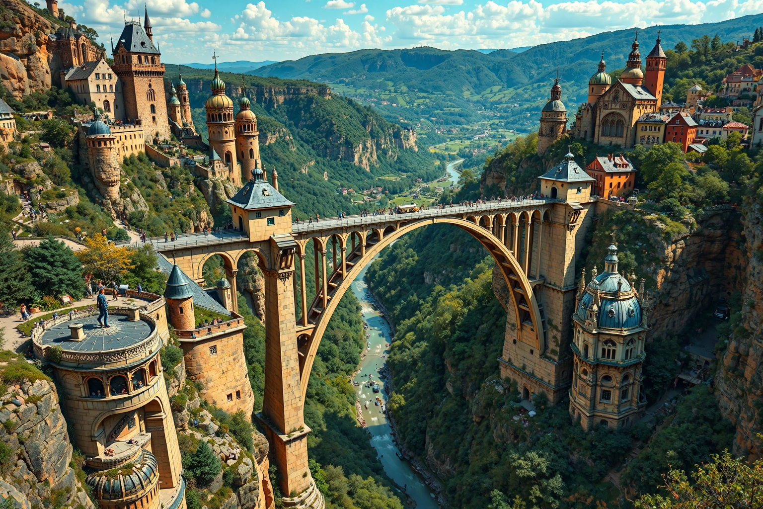 NSFW, Bastei Bridge Germany, Georgia O’Keeffe style, Bastei Bridge, Germany, breathtaking, views, Elbe Sandstone rock formations, surrounding valley, spectacular, must-see HD, sharp focus, stunningly beautiful, cybernetic style, futuristic, technological, cybernetic enhancements, robotics, artificial intelligence themes