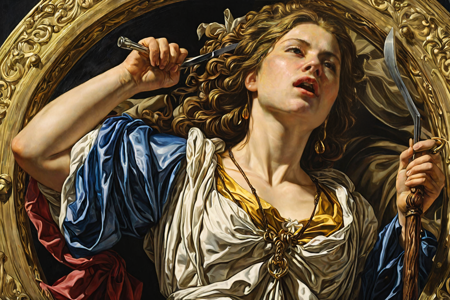 Judith and Her Maidservant by Artemisia Gentileschi , Artemisia Gentileschi, Judith, maidservant, notable work, Bible story, Holofernes, powerful figure, determined character, decapitation, skill, strong female characters, mastery, Baroque style. HD, sharp focus, stunningly beautiful, thick layered papercut art of, deep 3D, volumetric, dimensional, depth, thick paper, high stack, heavy texture, tangible layers