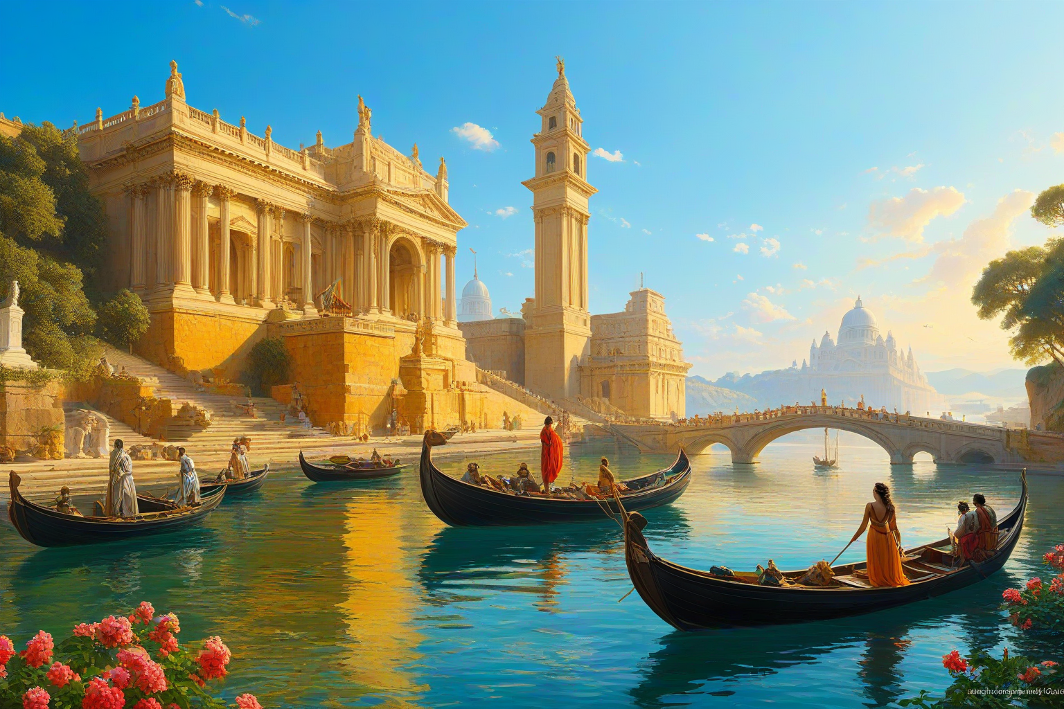NSFW, The Embarkation of the Queen of Sheba by Claude Lorrain , Renaissance, masterpiece, Queen of Sheba, Claude Lorrain, King Solomon, serenity, nature, landscapes, light, color, voyage, embarkation, journey, timeless charm, National Gallery, London. HD, sharp focus, stunningly beautiful, Simple Vector Art, 2D flat, simple shapes, minimalistic, professional graphic, flat color, high contrast, Simple Vector Art