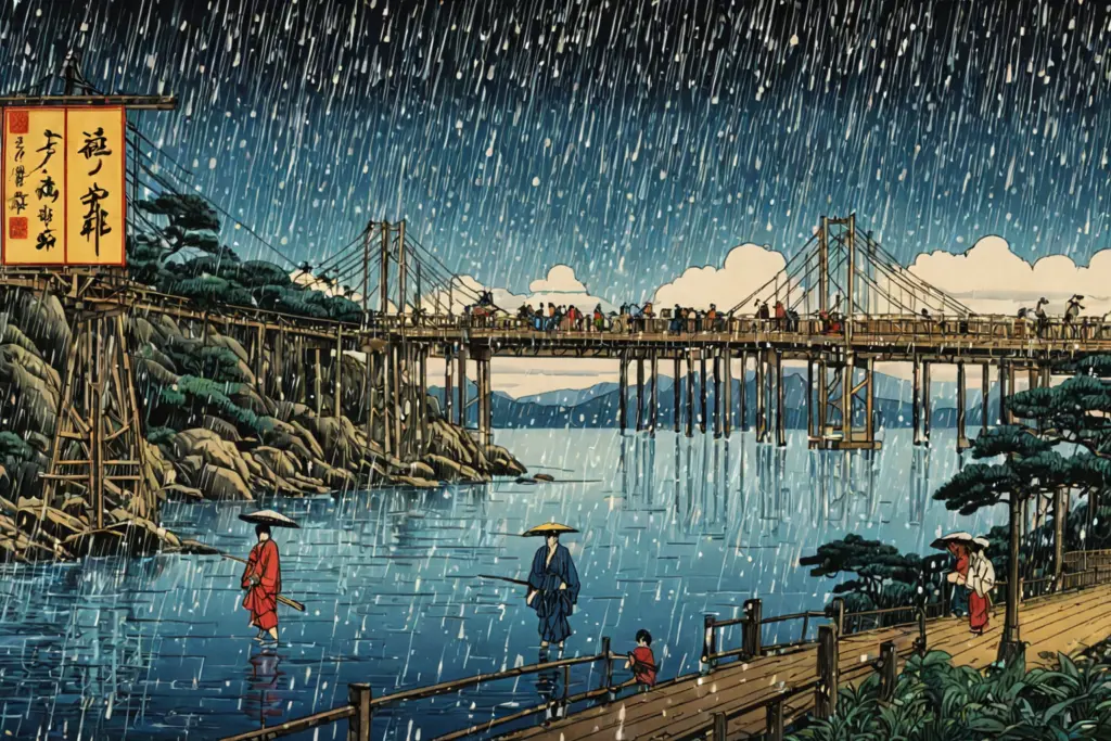 “Sudden Shower Over Shin-Ōhashi bridge and Atake” by Hiroshige